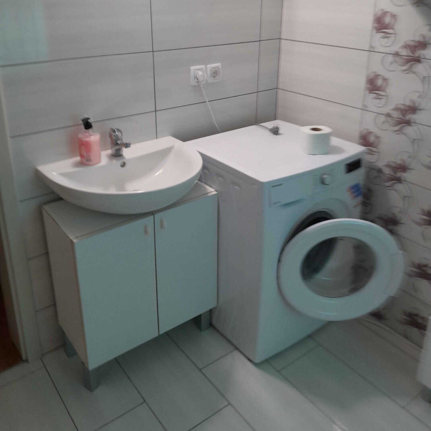 The house features two bedrooms: one with a double bed and another with two single beds. There is the option to use a sofa bed for extra visitors. he bathroom includes a shower, toilet, sink, and a washing machine.